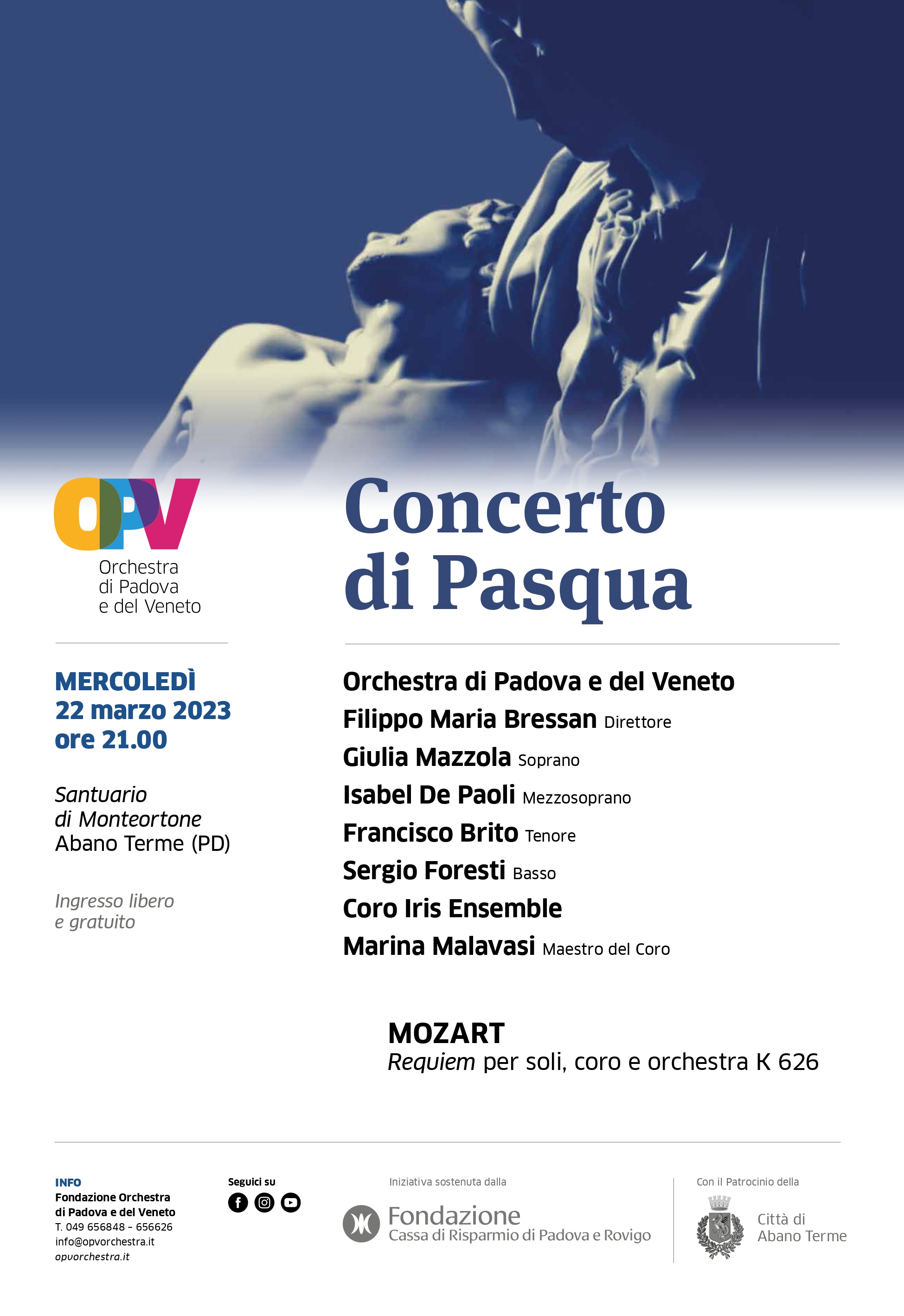 - 22 marzo – Santuario di Monteortone, Abano Terme (PD), Requiem in Re minore K 626 di W. A. Mozart [LOCANDINA] in collaborazione con Orchestra di Padova e del Veneto