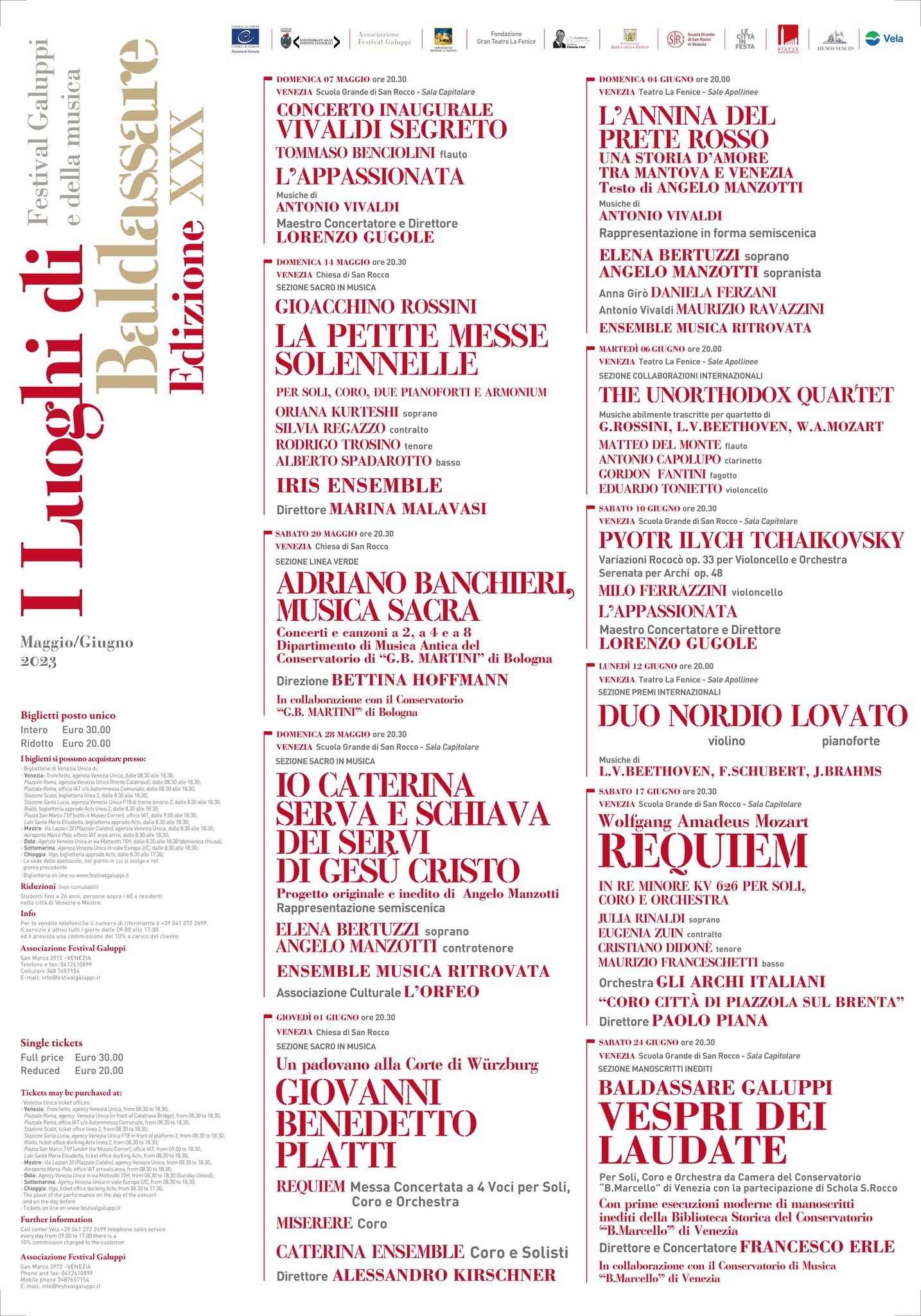 - 14 maggio – Chiesa di San Rocco, Venezia, Petite Messe Solennelle di G. Rossini [LOCANDINA] Festival Galuppi